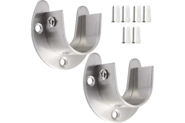 Closet Rod Support, Stainless Steel Curtain Rod Holders, Flange Set Closet Pole Holders with Screws, U-Shaped Open Type Closet Rod Brackets, Silver (34mm)