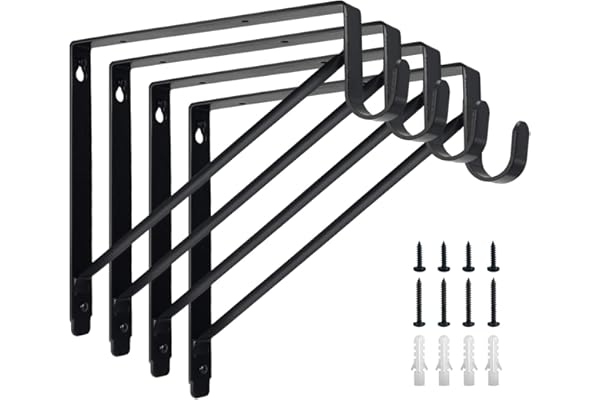 Heavy Duty Black Closet Shelf & Rod Brackets,Closet Shelves Bracket with Rod Shelving Support, with Screws
