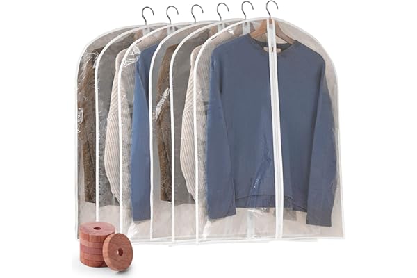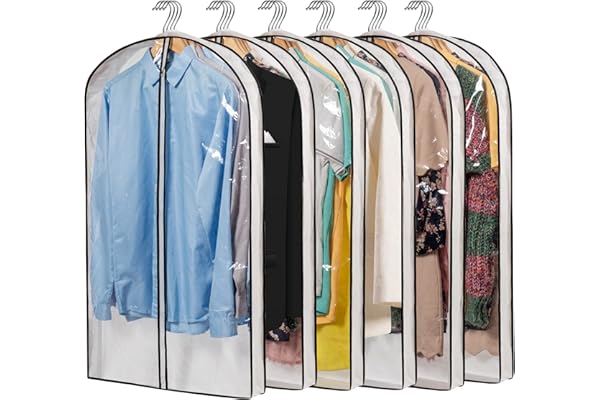 Perber Garment Bags for Hanging Clothes, 6 PCs Clear Garment Bag, Plastic Dustproof Suit Bag, Coat Protector Zippered Garment Covers for Closet Storage and Travel