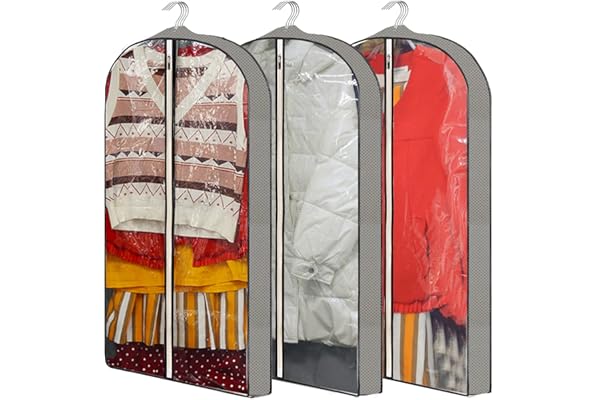 Clear Moth Proof Suits Covers with 4" Gussetes, for Hanging Clothes Closet Storage Travel, Plastic Protector for Coat, Jacket, Sweater, Shirts, 3 Packs