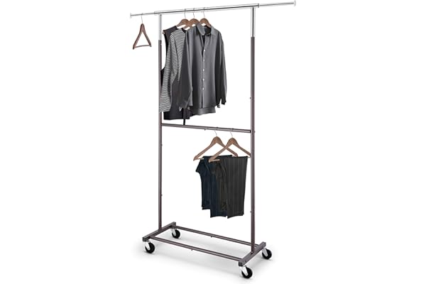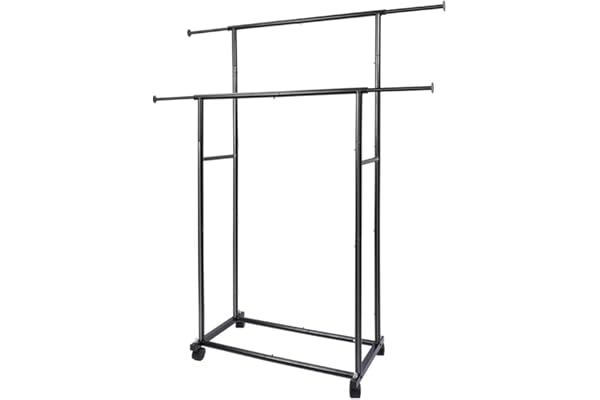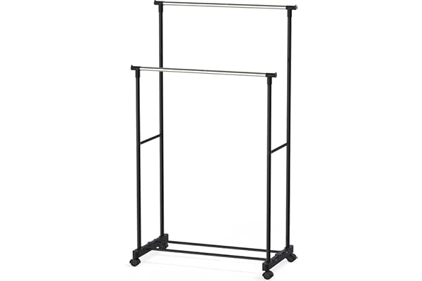 SimpleHouseware Double Rod Portable Clothing Hanging Garment Rack