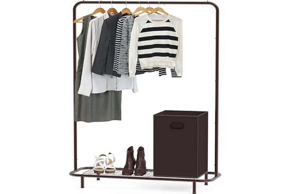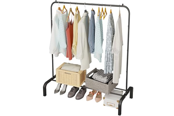 43.3 Inches Clothes Garment Coat Rack with Bottom Shelf, Clothing Rack for Hanging Clothes, Coats, Skirts, Shirts, Sweaters, Black