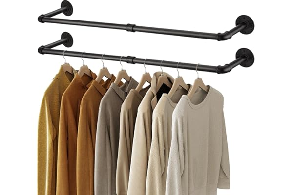 36.2 Inch Industrial Pipe Wall Mounted Garment Rack,Space-Saving Hanging Clothes Rack,Heavy Duty Detachable Garment Bar,Multi-Purpose Hanging Rod for Closet 2 Base (2 Pack)
