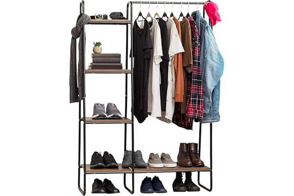 UDEAR Garment Rack Freestanding Hanger Double Rods Multi-functional Bedroom Clothing Rack