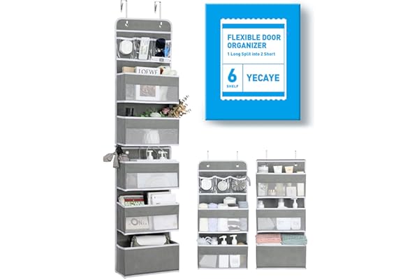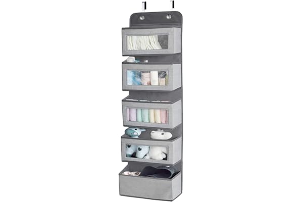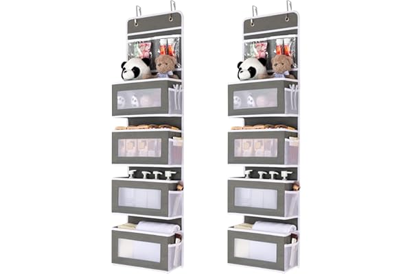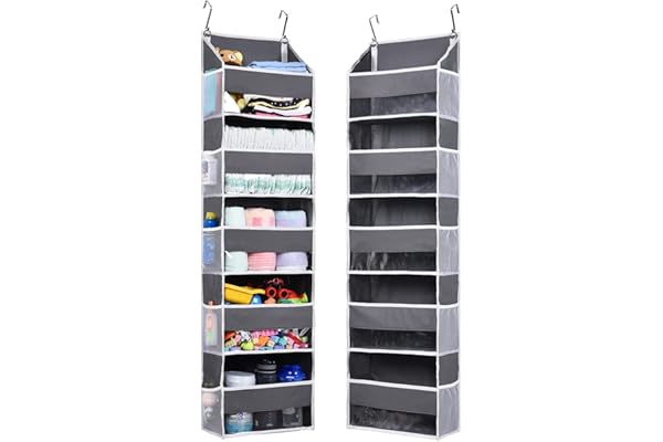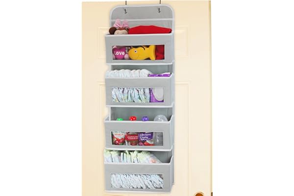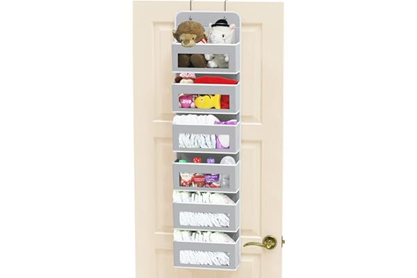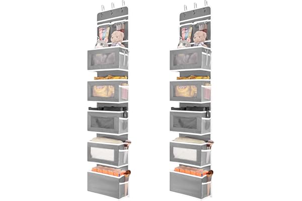 Flexible 1 Split into 2 Hanging Storage Door Organizer, Swing-proof Behind Door Organizers and Storage for Baby Nursery Bathroom Dorm Closet Pantry Camper RV, Grey