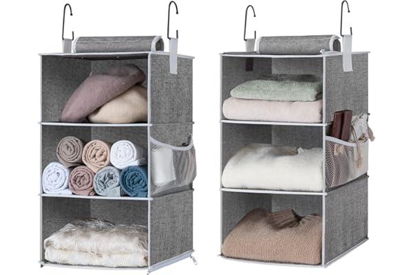 Two 3-Shelf Separable Closet Hanging Shelves, Canvas, Gray, 12" D x 12" W x 48 ¼"H