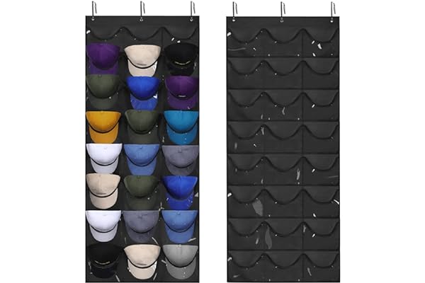 24 Pocket Over-The-Door Cap Organizer with Clear Deep Pockets to Protect, Store and Display Your Baseball Cap Collection, Complete with Over Door Hooks