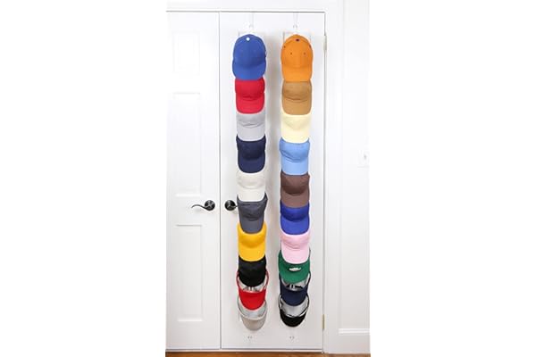 Hat Racks | Hold up to 40 caps | Over Door Organizer | Baseball Hat Organizer | Over Door Hanger | Fitted & Adjustable Caps & Visors | Door Slam Proof | 2 Straps | 20 Adj. Hooks | White