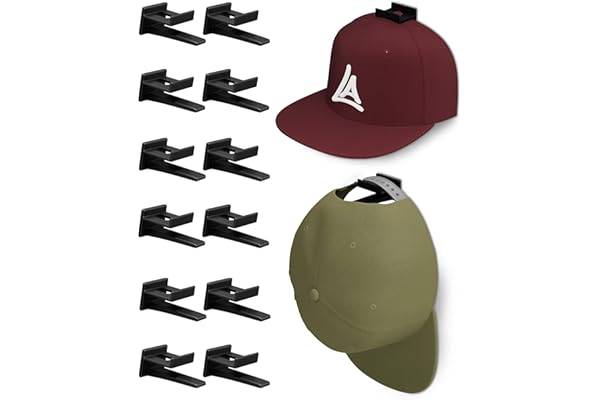 LokiEssentials Adhesive Hat Rack Display Hooks for Wall & Door (12 Pack) Baseball Cap Holder