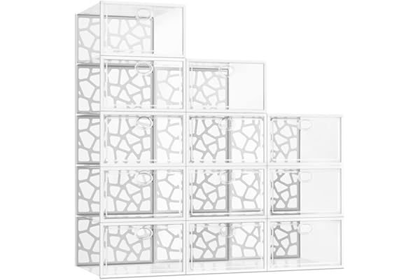 Pinkpum 12 Pack Shoe Storage Box Organizer for Closets, Foldable Sneaker Storage Fit for Size 11