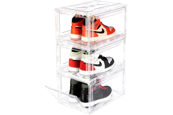 Shoe Organizer for Closet Clear, Shoe Boxes Clear Plastic Stackable, Foldable Sneaker Storage Containers