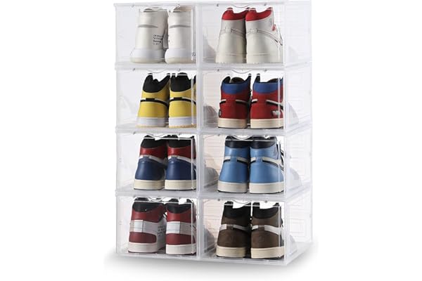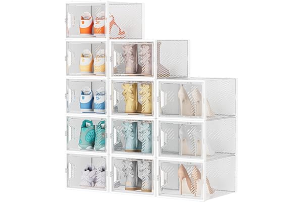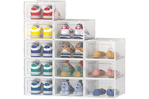 12 Pack Large Shoe Organizer for Closet, Shoe Boxes Clear Plastic Stackable Shoe Storage Boxes for Size 13