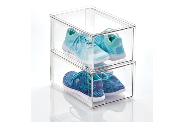 Clear Plastic Stackable Shoe Storage Bins with Drawers & Lids, Under Bed Shoe Storage Containers for Entryway, Closet Floor, Drop Front