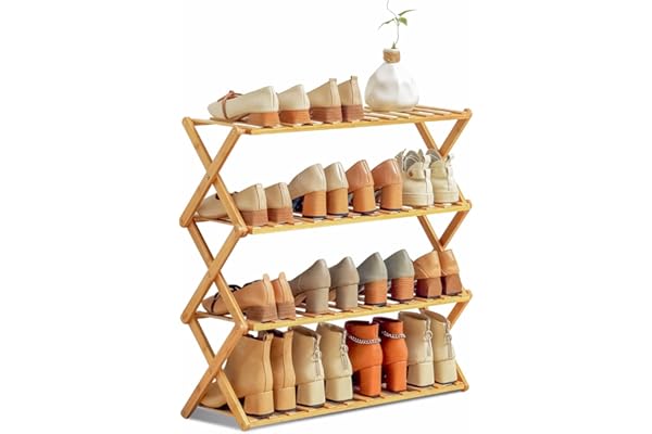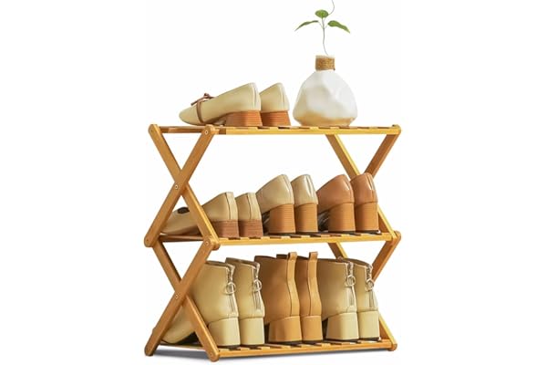 MoNiBloom Foldable Bamboo Shoe Organizer Rack