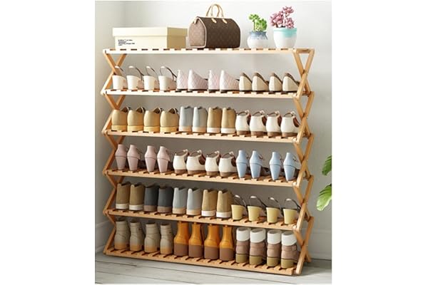 QIFFIY Six Layer Bamboo Shoe Rack Installation Free Simple Folding Solid Wood Shoe Cabinet Entrance Shoe Shelf(Natural Bamboo)