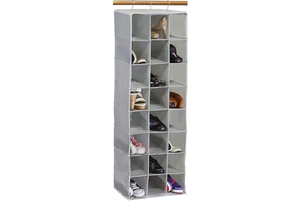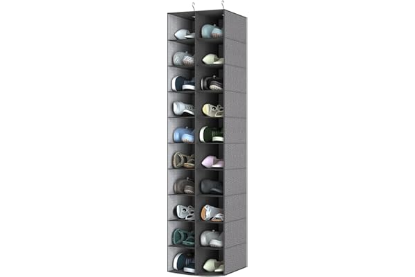20 Sections Hanging Closet Organizers and Storage Shelves, Space Saving Shoe Storage Rack Holder, Grey, 12''W×12''Dx 50''H