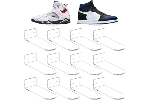 12 Packs Wall Mounted Clear Sneaker Shelves, Shoe Shelves for Wall to Display Collectible Shoes, Sneaker Collections, for Rooms(Standard Size)