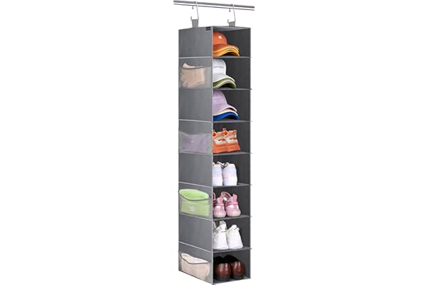 MISSLO 8-Shelf Hanging Shoe Organizer Clothes Closet Organizers and Storage Shelves Hat Holder with Large Shelf and Side Mesh Pockets for Hats Handbags Kid Sweater