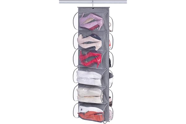 KEETDY 12 Large Clear Pockets Hanging Shoe Organizer Fabric Dual Sided Shoe Holder Rack for Closet Shelves with Roating Hanger for Storage Mens Shoes