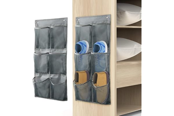 2-Pack Hanging Shoe Organizer, Wall Shoe Organizer Grey, 12-Pocket