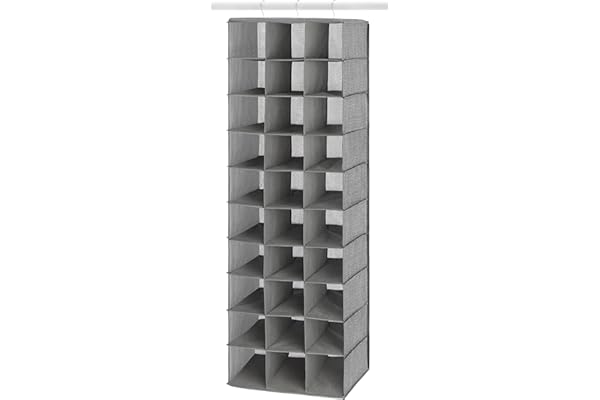 Crosshatch Gray, Hanging Shoe Shelves Closet Organizer, 30 Section