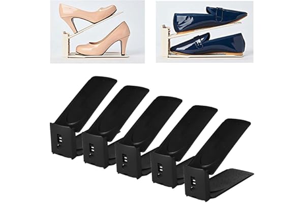 Double Shoe Rack Storage Holder For Closet, Easy Shoe Stacker For Sneaker High Low Heels Boots Flats Sandals, Black, Pack of 5