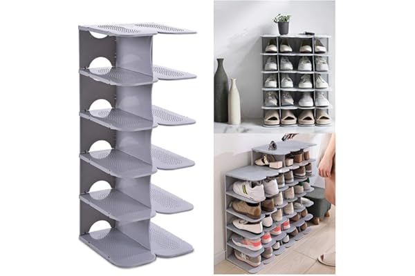 Adjustable Shoe Rack,Better Stability Shoe Organizer,Shoe Stacker,Space Saver,Pack of 6,Grey