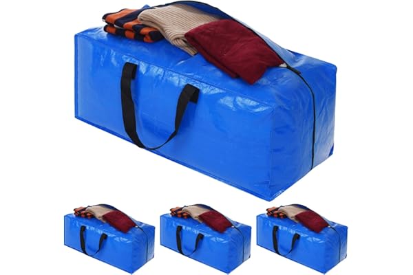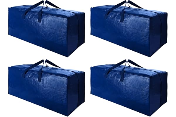 Blue Moving Bags Totes with Zippers for Clothing Blanket Storage, Dorm College Moving Supplies Boxes, Clothes Storage Bins Compatible with Ikea Frakta Cart, 4 Pack