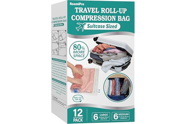 Roll Up Space Saver Bags for Travel, Saves 80% of Storage Space, Travel Compression Bags for Packing & Clothes, No Pump or Vacuum Needed