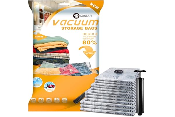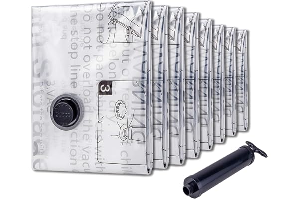Space Saver Bags for Clothes, Pillows, Comforters, Blankets Storage, Vacuum Sealer Compression Bags with Travel Hand Pump