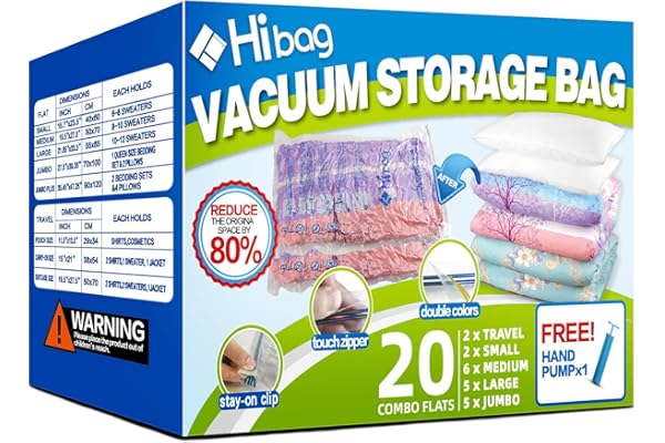 Space Saver Vacuum Seal Storage Bags 20-Pack Sealer Bags for Clothes, Clothing, Bedding, Comforter, Blanket