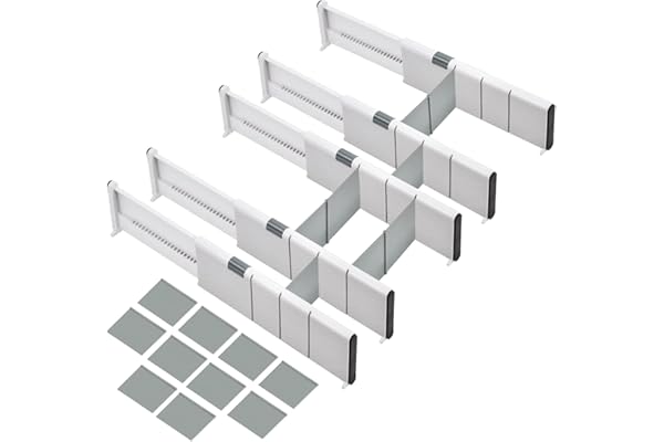Adjustable Separators with 10 Inserts 4" High Expandable from 11-17" for Bedroom, Bathroom, Closet, Clothing, Office, Kitchen, Strong Secure Hold, White