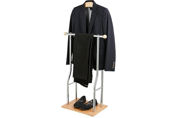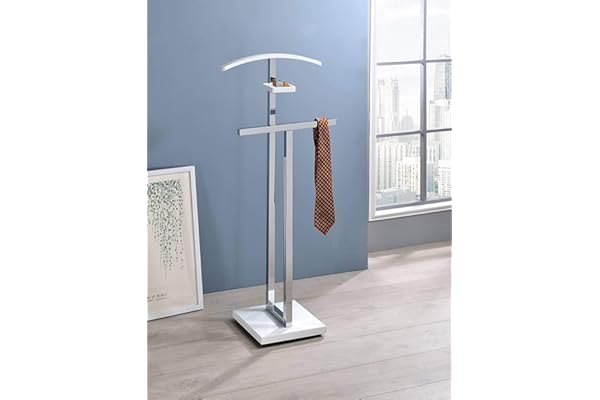 Vaccaro Metal & Wood Suit Valet Stand, Clothes Rack, White/Chrome