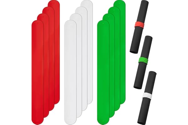 Holiday White Red and Green Flip Wraps Silicone Covered Metal Strips Flip 1 x 9 Inch Wrapping Paper Holder Poster Holder Paper Roll Holder Stabilizer Slap Bands for Storage Organization (12 Pieces)