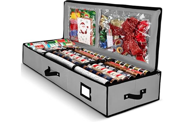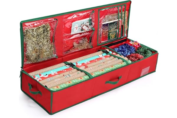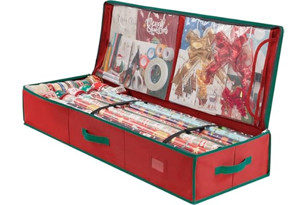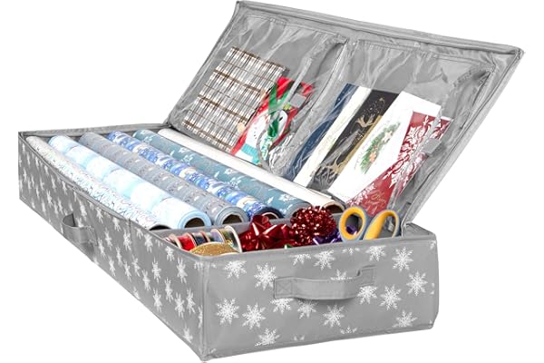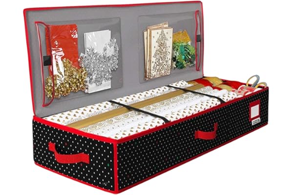 Christmas Wrapping Paper Rolls Storage, Under-Bed Storage Box for Holiday Storage & Accessories - Gift Wrap Storage Organizer Box By Hearth & Harbor
