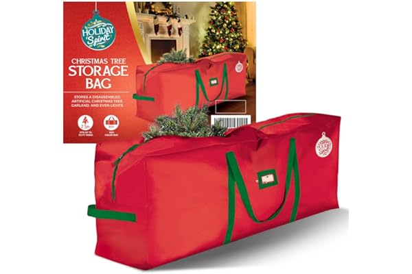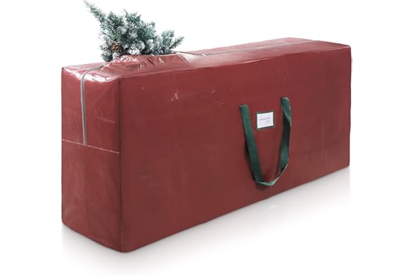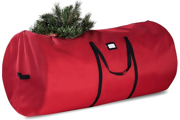 Heavy-Duty Tree Bag with Durable Reinforced Handles & Zipper, Waterproof Storage Bag Protects from Moisture & Dust (Fits a 9FT Tree, Red)
