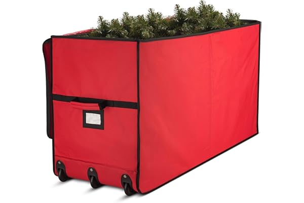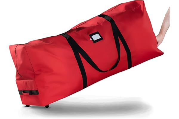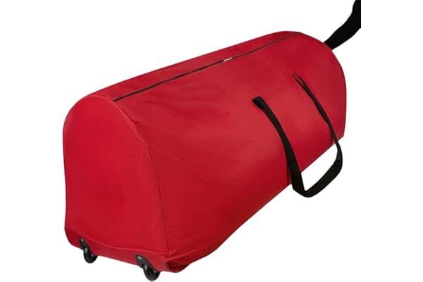 Storage for 9-Foot Artificial Christmas Holiday Tree. Zippered Bag, Carry Handles and Wheels for Easy Transport. Protects Against Dust, Insects, and Moisture. (RED)