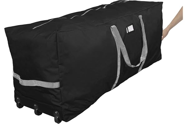 Fits Up to 9 Ft Tall Disassembled Trees, 28" H X 16.5" W X 60" L, 600D Oxford Extra Large Heavy Duty Xmas Container with Wheels & Handles (Black)