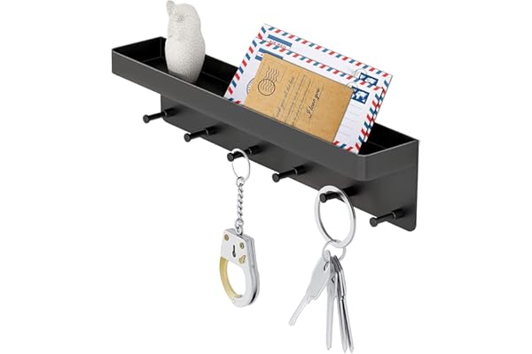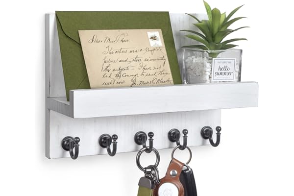 HONJIN Key Holder for Wall: Easy Installation Mail Organizer Wall Mount Hanging Key Rack for Kitchen and Entryway Decor with 5 Sturdy Key Hooks (White)
