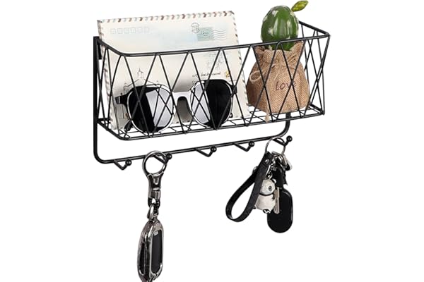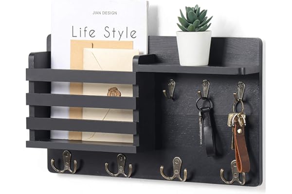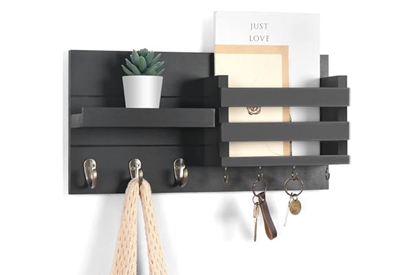 QVCILE Mail Organizer Wall Mount with Key Hooks and Wallet Holder