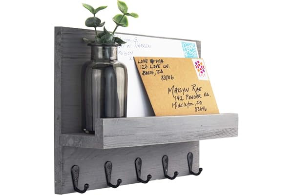 Wall Mounted Key Hangers for Wall with Mail Key Rack, Wooden Mail Organizer with Shelf, Rustic Home Decor for Entryway Mudroom Hallway Office