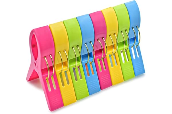 ECROCY Beach Chair Towel Clips on Cruise, 8 Pack Large Clips Clamps,Clothes Pegs,Beach Towel Holder to Keep Your Towel from Blowing Away,Heavy Duty and in Bright Colors