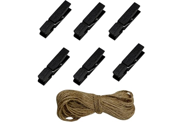 100pcs 1.3Inch (3.5cm) Black Small Wooden Chip Clips with 33 Feet Jute Twine for Bag Clips Clothespin Bag Clothes Pin Heavy Duty Outdoor(Black)