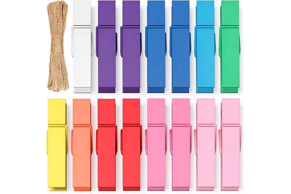 Small Colored Clothespins 100 Pack Wooden Rainbow Colorful Picture Clips with 32 FT String for Crafts, Little Baby Shower, Display Artwork, Hanging Decorative Tiny Cards