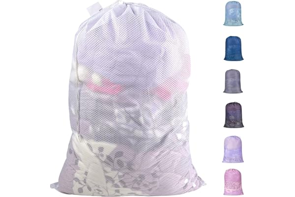 Polecasa Heavy Duty Large Mesh Laundry Bag with ID Tag and Locking Drawstring Closure