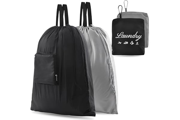 Laundry Backpack with Shoulder Straps and Mesh Pocket Durable Nylon Backpack Clothes Hamper Bag with Drawstring Closure for College, Travel, Laundromat, Apartment