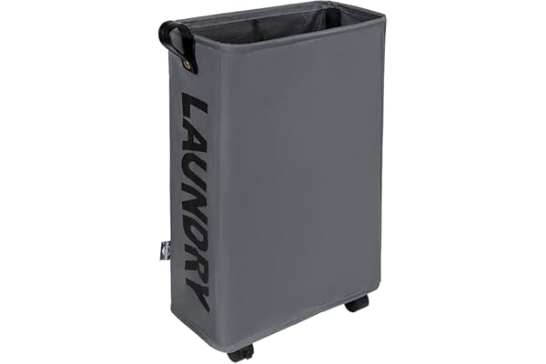 DOKEHOM Slim Laundry Basket with Leather Handle on Wheels (4 Colors)