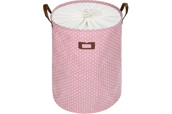 Collapsible Extra Large Drawstring Clothes Hamper Storage with Handle (Pink, XL)