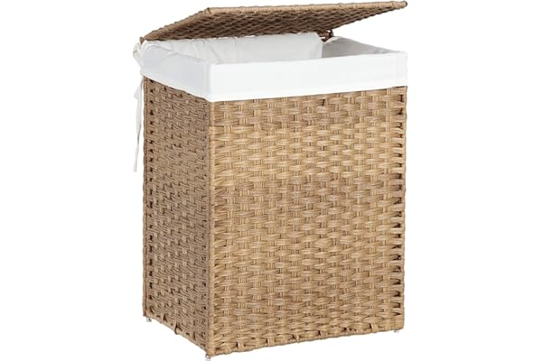 23.8 Gal (90L) Synthetic Rattan Clothes Laundry Basket with Lid and Handles, Foldable, Removable Liner Bag, Natural ULCB51NL