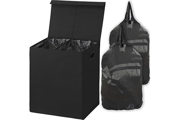 SimpleHouseware Double Laundry Hamper with Lid and Removable Laundry Bags